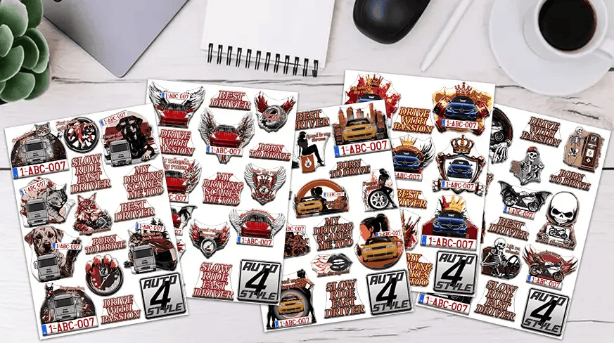 Nos designers expérimentés ont créé une grande collection d’autocollants personnalisés et élégants, parfaits pour sublimer votre voiture, moto ou camion. Choisissez parmi des designs uniques mettant en avant des silhouettes de véhicules, agrémentés d’éléments saisissants tels que des couronnes, des ailes, des filles audacieuses, voire des squelettes dans divers styles – du gothique à l’humoristique